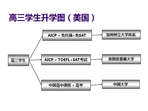 - AICP课程班学生成绩达到要求,可优先进入美国加州体系大学;