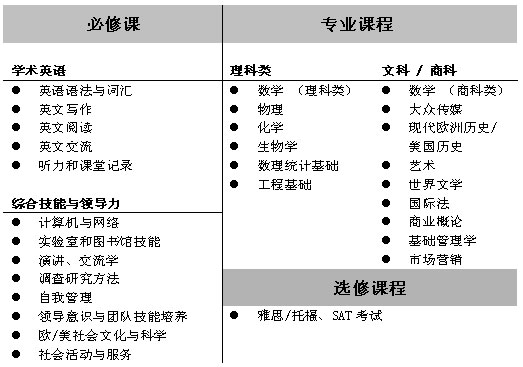 - 融合美国大学的预备课程、获得全球认可的大学学分